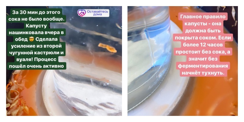 - DŮLEŽITÁ značka pro správné zahájení procesu kvašení: po 2-3 hodinách je vaše zelí pokryto vrstvou šťávy. Pokud se tak nestane, proces kvašení se nespustí a zelí prostě začne hnít. Maximální „bezvodá“ doba pro zelí je asi 12 hodin Poté již nelze uložit.