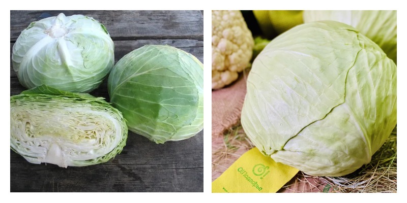 Odrůda zelí “Slava”. Hlavy jsou často (ale ne všechny!) zploštělé, nejsou dokonale kulaté.